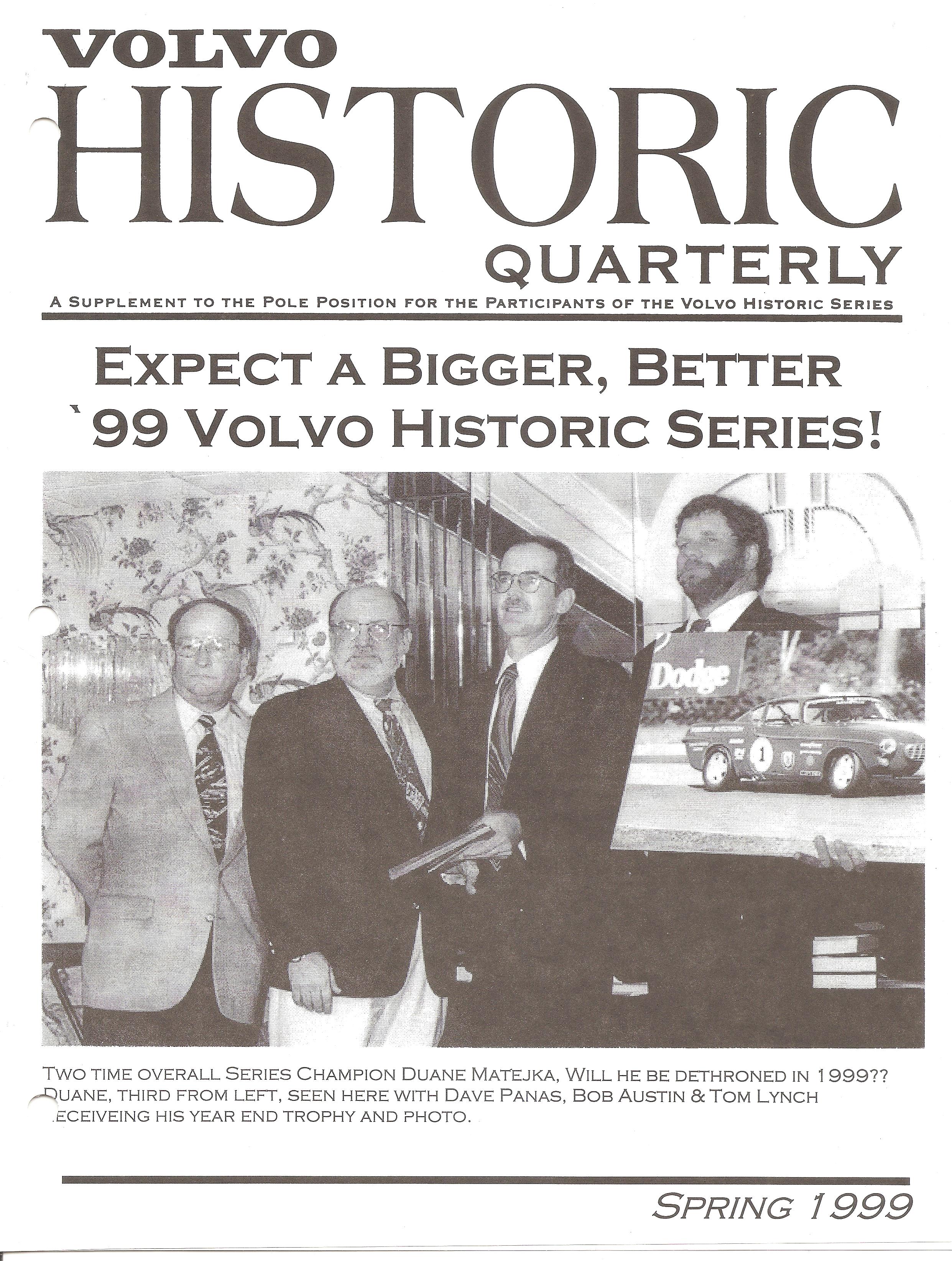 The three of them conspired to create a series for vintage cars to race in the Northeast, home base for Volvo US. Dave worked with the SCCA to get a set of vintage racing rules created. Volvo supplied the money, $50,000 the first year and a new Volvo as a pace car. Tom’s focus was marketing it to various tracks so we could run our events in conjunction with other races to get maximum exposure for Volvo.