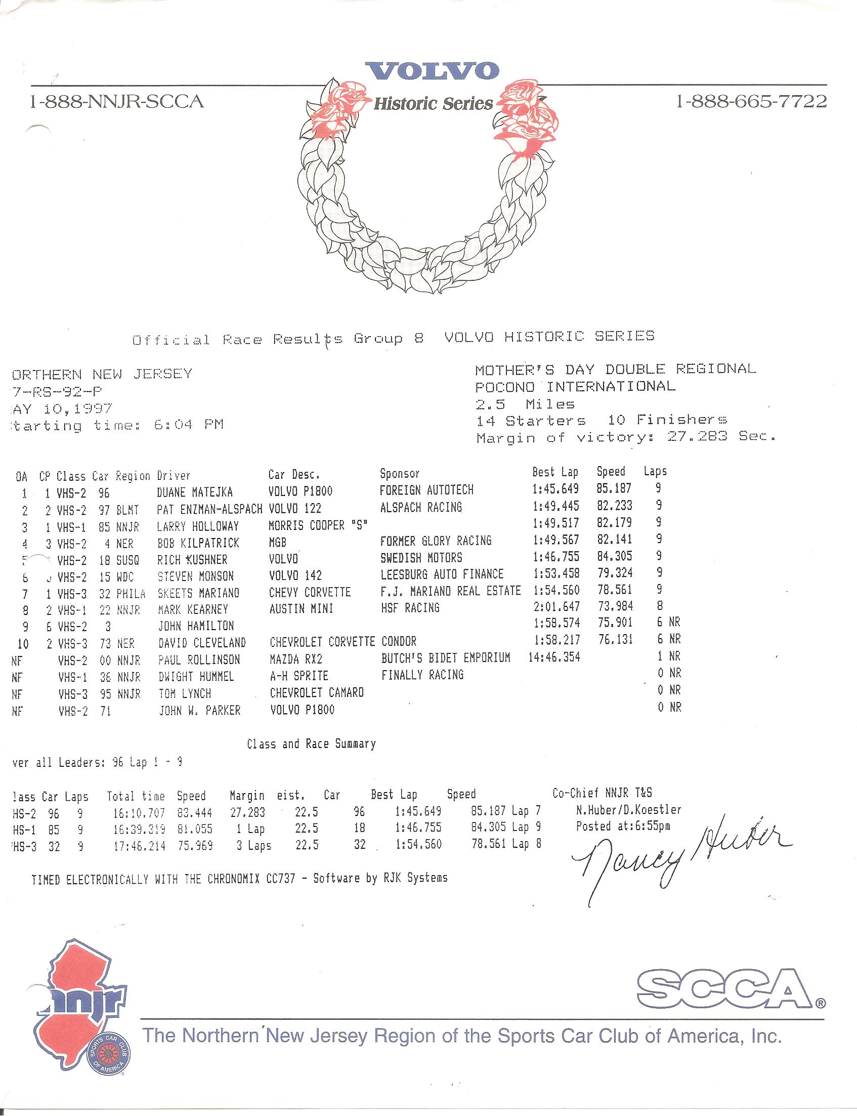 1st place overall went to Duane Matejka in a Volvo P1800 (his car is on the cover of the VHS brochure on the left).